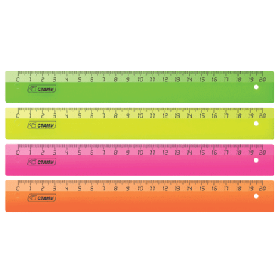 - Линейка 20 см СТАММ пластиковая, цветная
