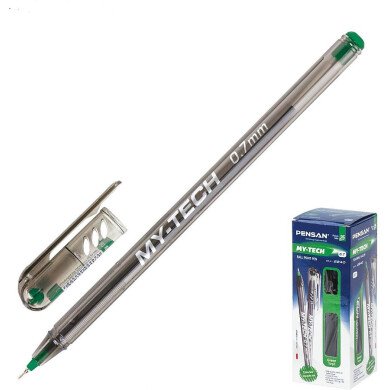 - Ручка шариковая 0,7 мм масляная Pensan "My-Tech", чернила зеленые, игольчатый узел, линия письма 0,3
