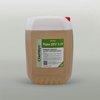 Plate Dev 1+9 - это концентрированный проявитель, предназначенный для быстрого и качественного проявления CTcP и аналоговых пластин.