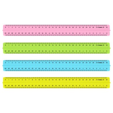 Линейка 30 см СТАММ пластиковая, с держателем, прозрачная, неоновые