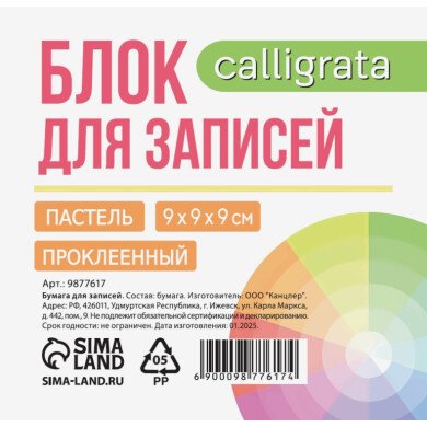 Блок для записей на склейке, 9×9×9, пастель 80 г/м², белая 65 г/м², белизна 92%