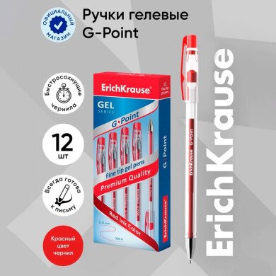 Ручка гелевая 0,38 мм, Erich Krause "G-Point", цвет красный , игольчатый узел, линия письма 0,25 мм