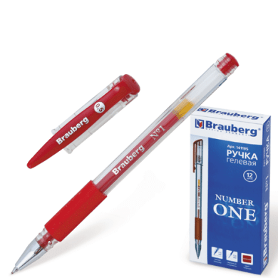 - Ручка гелевая 0,5 мм BRAUBERG "Number One", цвет красный