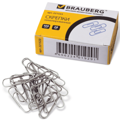 - Скрепки 28 мм Brauberg никелированные, в картонной уп. 100 шт
