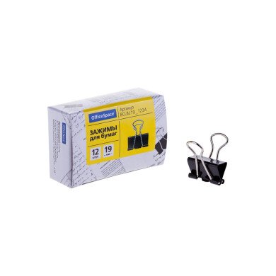 Зажим для бумаг 19 мм OfficeSpace черный, 12шт.