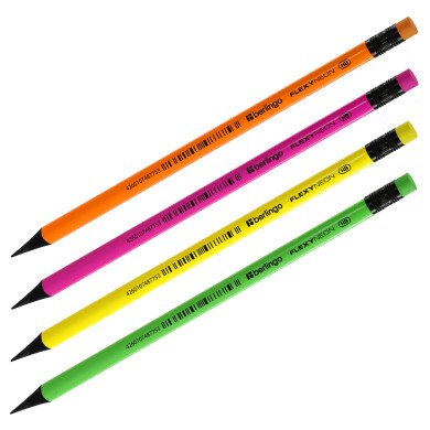 Карандаш ч/г Berlingo "Flexy Neon" HB, с ластиком, заточен., пластиковый, ассорти