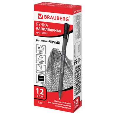 - Ручка линер 0,4 мм BRAUBERG "Carbon", трехгран. корпус, цвет черный