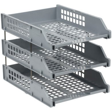 Лоток горизонтальный для бумаг СТАММ "Strong", набор 3шт., на метал. стержнях, серый