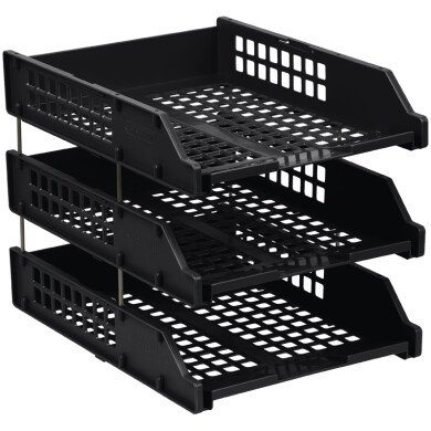 Лоток горизонтальный для бумаг СТАММ "Strong", набор 3шт., на метал. стержнях, черный
