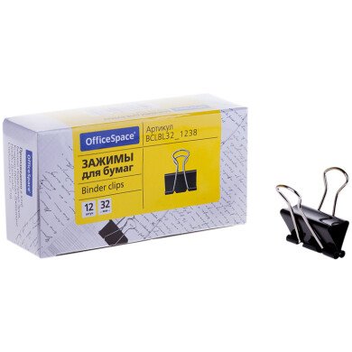 - Зажим для бумаг 32 мм OfficeSpace черный, 12шт.