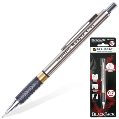 - Карандаш автоматический 0,7 мм, BRAUBERG трехгранный корпус+грифели 12шт