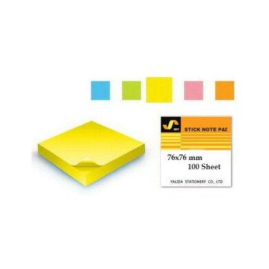 Стикеры выполнены из бумаги неонового желтого цвета, плотностью 70 г/кв.м,Размер 76*76 мм.