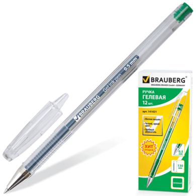 - Ручка гелевая 0,5 мм BRAUBERG "Jet", цвет зеленый