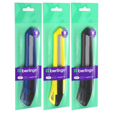 Нож канцелярский 18 мм Berlingo "Razzor 100", push-lock, ассорти, европодвес