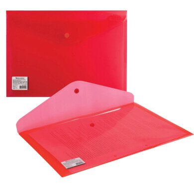 - Папка-конверт на кнопке 150 мкм А4 Brauberg, прозрачная, красная