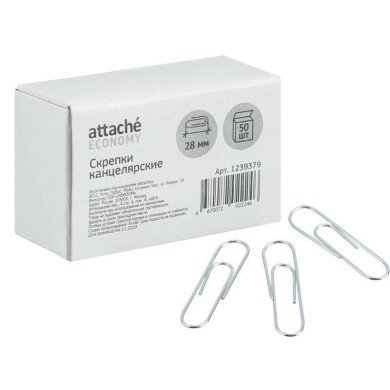 Скрепки Attache Economy оцинкованные, 28 мм,негофрированные, 50 шт/уп