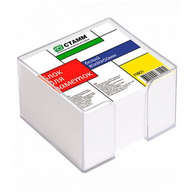 - Блок для записи 8*8*5 см СТАММ белый в прозрачном пластиковом боксе