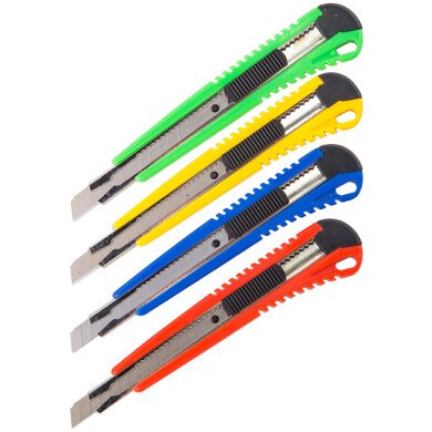 Нож канцелярский 9мм OfficeSpace, усиленный, с фиксатором, металл. направляющие