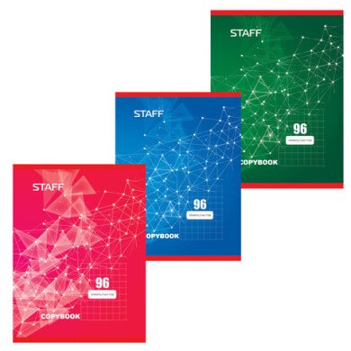 - Тетрадь А4 96 л, Staff, клетка, скоба, мелованный картон