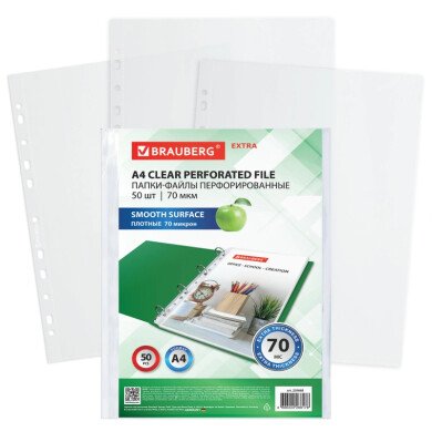Файлы с перфорацией А4 70 мкм BRAUBERG "EXTRA 700", пачка 50шт