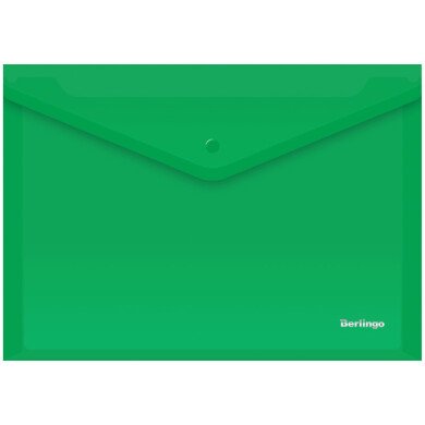 - Папка-конверт на кнопке 180 мкм А4 Berlingo, непрозрачная, зеленая