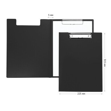 - Папка-планшет А4 пластик OfficeSpace черный с зажимом + крышка, 500мкм