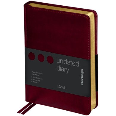 - Ежедневник недатированный А6, 100*150 мм 160л., кожзам, Berlingo "xGold", зол. срез, бордовый