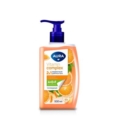 Мыло жидкое AURA Vitamin Complex 500мл 2в1 Апельсин и витамины дозатор