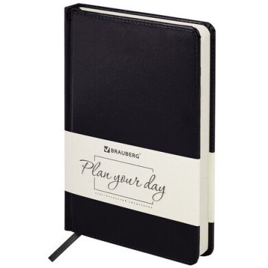 Ежедневник недатированный А5 13,8*21,3 см BRAUBERG "Imperial", под кожу, 160 л., черный,