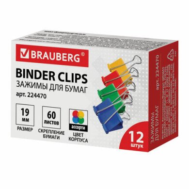 - Зажим для бумаг 19 мм BAUBERG цветные, в картонной коробке