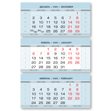 - Календарный блок 2025 мелованные металлик МИНИ 3-спиральный Серебристо-голубой 297*145мм
