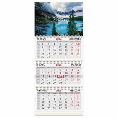 - Календарь квартальный на 2025 г. 3 блока, 3 гребня, с бегунком, мелованная бумага, BRAUBERG, "Горно