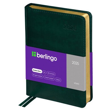 Ежедневник датированный 2025г. А6, 184л., кожзам, Berlingo "xGold", зол. срез, зеленый