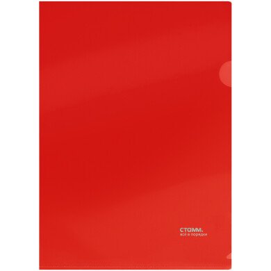 Уголок пластиковый А4 180 мкм, СТАММ, пластик, непрозрачная,красная