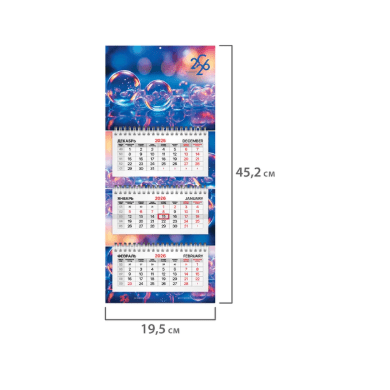 Календарь квартальный 2026 г., 3 блока, 3 гребня, бегунок, офсет, BRAUBERG EXTRA MINI, "Абстракция"