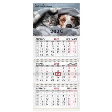 Календарь квартальный на 2026 г., 3 блока, 3 гребня, бегунок, офсет, BRAUBERG, "Домашние любимцы