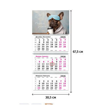 Календарь настенный 3-х блочный 2026 Пёс 30.5x67.5 см