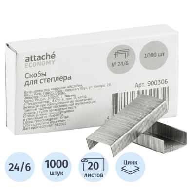 - Скобы для степлера №24/6 Attache Economy оцинкованные (1000 шт.)