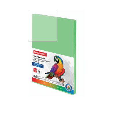 Бумага цветная А4 BRAUBERG, 80 г/м2, 100 л., интенсив, зеленая, для офисной техники