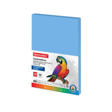 Бумага цветная А4 BRAUBERG, 80 г/м2, 500 л., интенсив, синяя, для офисной техники