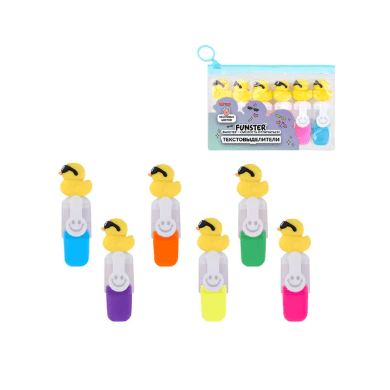 Набор текстовыделителей с топперами 6 ЦВЕТОВ НЕОН, "КРУТЫЕ УТЯТА", линия 1-4 мм, FUNSTER (ФАНСТЕР)