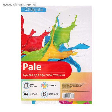 Бумага цветная Calligrata, А4, 500 листов, 5 цветов, пастель, 80 г/м²