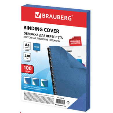 Обложки картонные для переплета, А4, КОМПЛЕКТ 100 шт., тиснение под кожу, 230 г/м2, синие, BRAUBERG