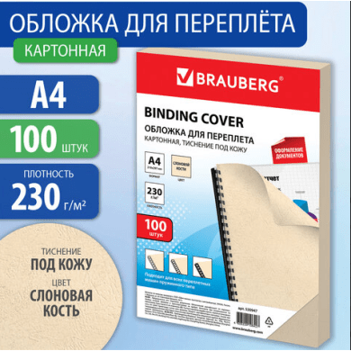 Обложки картонные для переплета, А4, уп. 100 шт., тиснение под кожу, 230 г/м2, слоновая кость