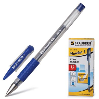 - Ручка гелевая 0,5 мм BRAUBERG "Number One", цвет синий