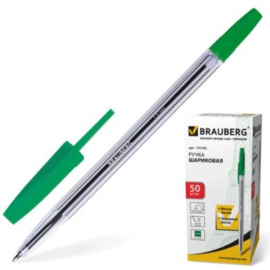 - Ручка шариковая 1,0 мм, Brauberg Line, корпус прозрачный, зеленая