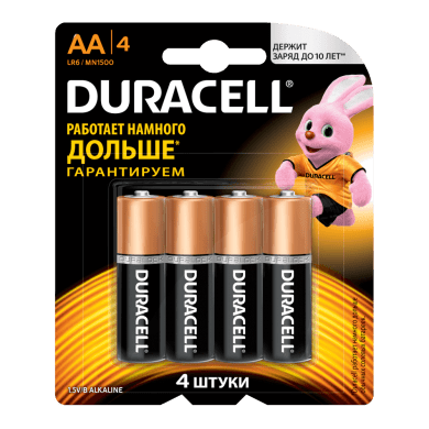 Батарейки AA Duracell LR6 Basic, алкалиновая блистер 4 шт