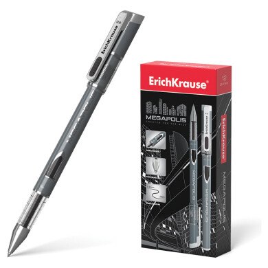 - Ручка гелевая 0,5 мм, ErichKrause "Megapolis Gel", цвет черный, серый корпус