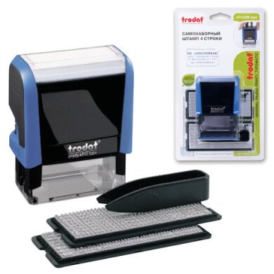 Штамп самонаборный 4-строчный, оттиск 47х18 мм, синий без рамки, TRODAT 4912P4/DB, КАССЫ В КОМПЛЕКТЕ