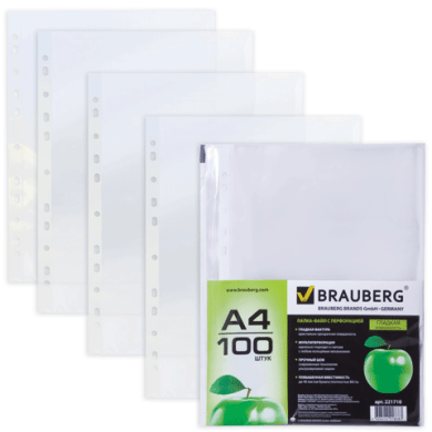 - Файлы с перфорацией А4 35 мкм Brauberg Яблоко, до 40л пачка 100шт